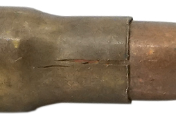 - アイテム説明BESA車載機関銃用に使用された8mmモーゼル弾 ダミーカートです。 ヘッド・スタンプ「R↑L 43 IIZ」で1943年製のボール(普通)弾である事が判ります。 雷管を囲む紫色のラッカー塗装は僅かに残っています。 弾頭は磁石に反応し、スティール・コアである事が判ります。 薬莢や弾頭には経年に伴うくすみが見られますが、大きな腐食等はありません。 ネック部分にはヒビが入っており手で弾頭を引き抜くことが出来る状態ですが、勝手に弾頭が抜けてしまう事はありません。 雷管に打撃痕があり、装薬等の一切入っていない安全品です。 (TK)