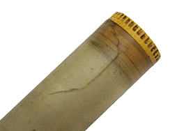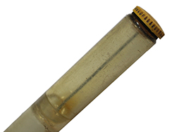 プラスティック製の容器でチューブ型のM1 ガーランド オイラーです。 長さ約15cm、直径約2cmで両端の蓋が黄色の品です。 片側に極僅かにオイルが残っています。 片側に3cm程のひび割れがありますが、蓋の開閉などに問題はありません。 経年によりやや曇った色合いになっていますが、概ねしっかりとした状態です。