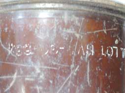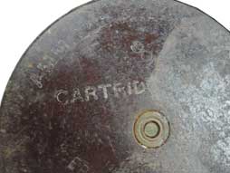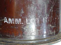 ベークライトのような色ですが、これはコーティングで鉄薬莢です。 傷や腐食によってロットなどの刻印は読み難くなっており、「19B」や「195○」の年号(1桁目は判読不可)が読めます。