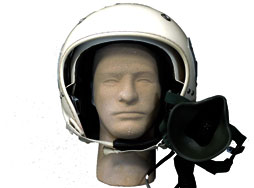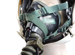 フランス製で、1970年代後半にミラージュ他、スターファイターのパイロットにも使用されていたようです。 デュアル・バイザー仕様となっており、バイザーはスモークとクリアになっています。 酸素マスク付で、無線マイクもそのままです。 本品はチン・ストラップが装備されている事から、西ドイツ空軍用と考えられます。