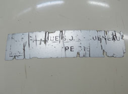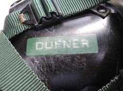 酸素マスクにパイロット名らしき「DUFNER」の文字がシールされています。 またヘルメット外側後部のシールはかすれて判別はかなり難しいですが、「Gueneau-Geno」「316」らしき文字が読めます。