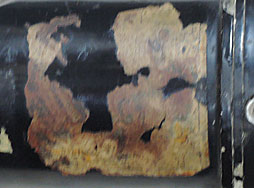本体そのものは時代を考えると存外に良い状態で、剥げや一部腐食、ガラス面の汚れなどは見られますが、全体の黒の焼き付け塗装もほとんど残っております。
