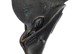 裏面に「BOLEN LEA PROD.」の刻印が有り、このBNOLEN社は70年から80年代に製造されたM1911時代の最末期の製造品となります。 「U.S.」はやや薄め。それなりの使用感はありますが、戦後M1916ホルスターらしい黒色も全体に残っており、最後期のものだけあり、ギボシのハマリ具合や革の硬さと柔軟性も変質しておりません。 縫い目も一部に若干の解れがある程度です。