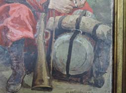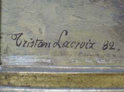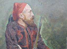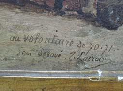 モチーフは1830年代に仏領北アフリカで編成された植民地兵です。 独特のヒゲ、派手な軍服に身を固め赤いフェズを被ったズアーブ兵の頭身画です。 兵士はクリミア戦争以来精鋭部隊として有名になったズアーブ兵独特の普仏戦争時の軍装を身に纏っています。 兵士の手にしているのはシャスポー M1866 小銃です。 額入りのサイズは(縦 51,5cm x 横 42,5cm)、油絵のサイズは(縦 33,0cm x 横 24,0cm)です。 額縁に多少傷みがあります。 油絵には極小の絵の具の剥がれがありますが許容範囲です。 同じ構図の油絵は世界中に二つとない希少性オリジナル性コレクション性が高い一品です。 絵の左下に「Tristan Lacroix 82」の作者名と1882年の製作年号が入っています。 Tristan L. J. Lacroix(1849-1914年)はフランス人の画家で風景画、人物画、動物画を得意としました。 右下には「au volontaire de 70・71 〇on devoue T. Lacroix」と入っています。 (KK)(MM)- 詳細画像