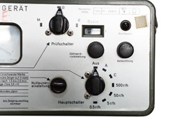 - アイテム説明1960年代 西ドイツで生産された放射線測定機です。正面上部の表示から、1963年製と思われます。