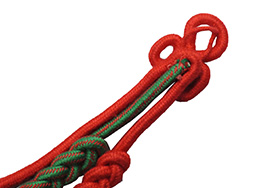2本1組で赤の飾緒と緑地に赤の紐が織り込まれた飾緒の2本が一体となった造りになっています。