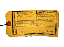 各ダイヤルは小気味良く回転し、目盛りも連動していますが、作動未確認の為作動の保証はいたしかねます。 上面にはSERVICEABLE ITEM REPAIREDのシールが貼られており、後ろ面には「C-1939/ARC-58」のペイントが見られます。 また当時の管理票と思われる紙タグも付属しています。 (YS)