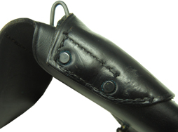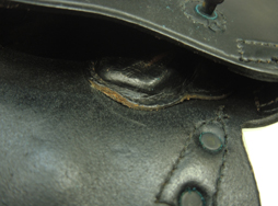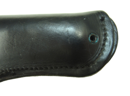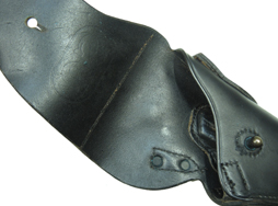 全体に少々の小傷が見られますが、銃を収めていた跡も見られますが、ひどく癖が付いている様子はなく使用感は比較的少ない印象です。 張り出した部分や留め具周辺が僅かに仕上げが落ちていますが、全体に黒い仕上げが鮮やかに残っています。