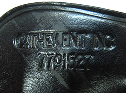 全体に少々の小傷が散見されますが、収納跡は殆ど見られず使用感の少ない品です。 現状しっかりとしていますが、全体体的に若干乾燥が感じられます。黒い仕上げは大変鮮やかに残っています。 表面にははっきりと「US」のスタンプ。 裏面にはやはりはっきりと「CATHVENT INC 7791527」が打たれています。 (YS)