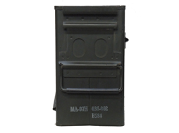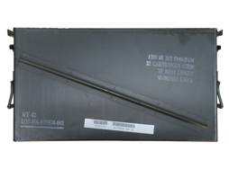 米軍 40mm グレネード 弾薬用の弾薬箱です。 表面には「HAW88K011-011」などのステンシルが記されています。 多少の汚れなどはあるものの、状態は比較的良好で、底面にも傷は少なく、各部の動作もしっかりとしています。 大きな凹み変形等はなく、内側も非常に良い状態を保っています。蓋上面のステンシルが上塗りされている点などから、恐らくは再塗装を経たものであると推測されます。 (TU)