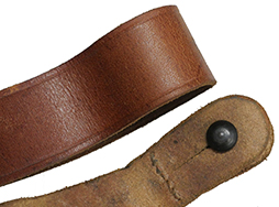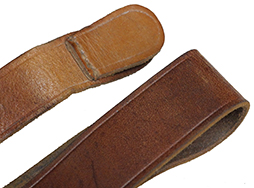 コンディションから戦後製と思われますが、フランスは同系状のスリングを19世紀から使用していますので、MAS以前の小銃に使用しても違和感はありません。 スタンプの有無、種類は個体によって異なります。 革の状態には個体差が見られますが、どの個体も十分にしなやかさが保たれています。 金具には擦れや塗装の剥落が見られるものの、大きな破損や変形は見られません。 (TK)