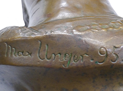 作者のMax Unger は1854年1月26日プロイセン王国の首都ベルリン生まれ、1918年にバイエルン王国のBad Kissingenで64歳で亡くなった著名なドイツ人彫刻家です。主にプロイセン王室からの依頼を受けて制作活動を行っていました。現存する大きな作品はノルウェーのVangsnes にあるFridtjof the Brave 像です。- 詳細画像