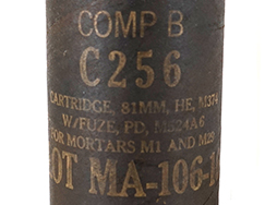 81mm迫撃砲弾の一つであるM374砲弾(HE)用のケース。 ケースは肉厚で堅牢なものとなります。(MD)