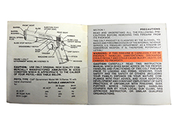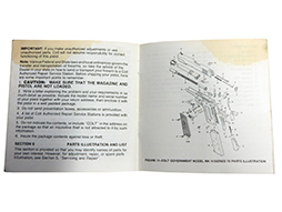Colt GovernmentModel MK IV/SERIES 70マニュアルです。 図版多数。擦れや染みなど経年の変化が見られますが、落丁等はありません。 約12.5cmx 12.5cm。 全36頁 (AW)