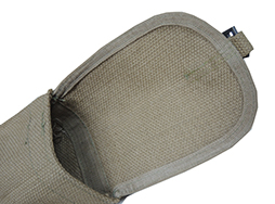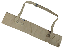 第一次世界大戦時に合衆国陸軍信号部隊 (Signal Corps) で使用されたタイプの信号旗用キャンバス製ケースです。 ケース表面には部隊マーク及び「U.S.ARMY」、「FLAG KIT」の文字がスタンプで押されています。 革製の留め紐が一本付属しています。 キャンバス部については目立った破れや解れ等は見受けられず、各金具についても大きな腐食なども見受けられず、総じて良好な状態が保たれています。 (KK)