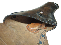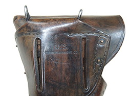 - アイテム説明第一次世界大戦時から米軍で使用されていた、M1911自動拳銃用のM1916ホルスターです。 本体裏面には第二次世界大戦中にM1916ホルスターを製造していた米国マサチューセッツ州ウースターのGraton & Knight社の刻印が入っています。 革部分は経年による若干の擦れやほつれが見受けられるものの、目立つ傷や破れは少なく、良好な状態を保っています。 金具についてはフック部分に仕上げの?がれがございますが、目だつ錆や欠けなどは多くない印象です。 表面に「US」のスタンプと、裏面に製造元の「U.S. GRATON&KNIGHT CO」のスタンプが、それぞれ確認できます。 (TU)