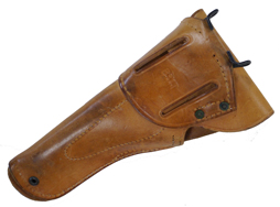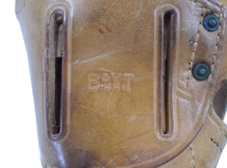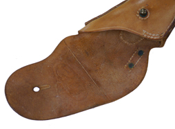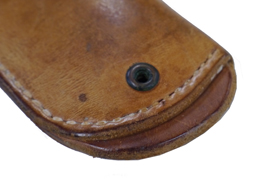 - アイテム説明米軍が1916年に採用したM1916ホルスター (Boyt製)です。 茶革のものは大戦期のイメージがありますが、実際にはベトナム戦争頃まで使用されました。 ホルスター裏面のベルト・ループ付近に「Boyt 1944」の文字が見られます。 本体は明るいブラウンの革地となっており、経年に伴うシミや小傷が僅かに見られるものの適度な柔らかさを保っています。 フラップの金具穴も広がっておらず、しっかり蓋を留めることができます。 縫い目に関してはほつれ等は見られません。 金具部に関しても経年による擦れや緑青が見られますが、こちらも破損等は見られず、総じてしっかりした状態が保たれています。 (TK)