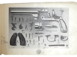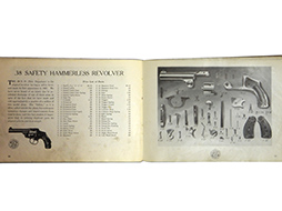 古いSmith & Wesson リボルバーの価格や部品のカタログです。 図版多数、全39頁。 古い品のため経年の変化が見られテープで補修されている箇所があります。 また落丁は無いものの頁の分離が見られます。 約22.5cmx 約15.5cm。 (AW)