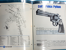 COLT社製拳銃のデータ・ペーパー15枚セットです。 クリアーファイルに収納された全15枚(シングルアクションアーミー、Mk IV、コマンダー、380、ウッズマン、ウッズマンスポーツ、ハンツマン、ポリスパイソン、オフィシャルポリス、コブラ、ディテクティブ、ダイアモンドバック、ローマン、エージェント、デリンジャー)。 古い品のため経年の変化が見られるものの目立つ破損の無い美品です。 約21.5cmx 約28cm。 (AW)