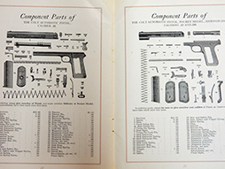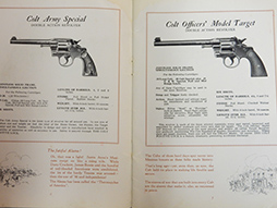 古いCOLT社製拳銃の価格 部品 カタログです。 図版多数、全40頁。 古い品のため経年の変化が見られ落丁は無いものの頁の分離が見られます。 約15cmx 約20cm。 (AW)