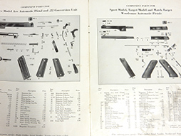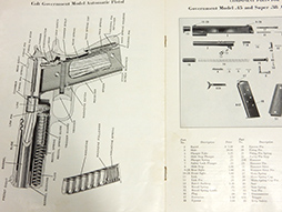 1947年7月発行、COLT社製拳銃の部品価格リストです。 図版多数、全9頁。 古い品のため染み汚れが見られますが大きな破損も無く程度の良い品です。 約21.5cmx 約28cm。 (AW)