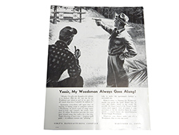 1948年7月発行、COLT社製拳銃の部品価格リストです。 図版多数、全9頁。 古い品のため折れなどが見られますが大きな破損も無く程度の良い品です。 約21.5cmx 約28cm。 (AW)