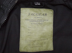 ドイツ連邦陸軍特殊部隊・KSKのスモック上下セット (初期型)です。 サイズはSで、両肩にドイツ国旗が縫い付けられています。 上下共にほとんど解れや汚れは認められず、ベルクロやファスナー等の留め具類も磨耗が少なく、たいへん良好な状態を保っています。 (TU)