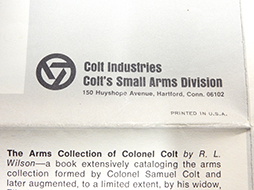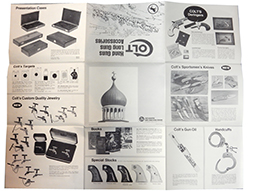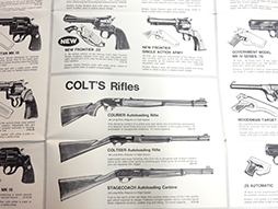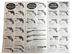 コルト社 大判リーフレットで裏表に商品が紹介されています。 若干の経年感はあるものの、程度の良い品です。 開きますと約72cmx約57cmです。 (AW)