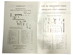 コルト シングル・アクション・アーミー パーツ・リストです。 経年感はあるものの、程度の良い品です。 開きますと約21.5cmx約28cmです。 (AW)