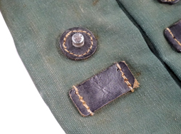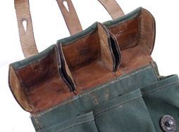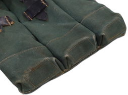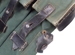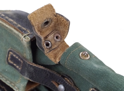 - アイテム説明MP44 マガジン・パウチ (東ドイツ製) です。 戦後チェコスロバキアや東ドイツ等でもMP44は使用されており、本品は東ドイツで製造されたものと思われます。 東ドイツではオリジナルのマガジン・パウチも使用しましたが、1950年代後半には消耗して不足した補充分をドイツ・オリジナルの規格と同じように製造しました。 本品はその内の一つです。 戦後チェコスロバキアからMP44が放出された際にMP44と一緒に弊社が仕入れた品です。 ドイツ軍用と同じ規格 (一説によると戦中のドイツで実際にマガジン・パウチを生産していた工場) で作ってはありますが、一部小差があります。 復刻品として作られた品ではありませんので、ドイツ軍の刻印は入っておらず東ドイツの「Mdl IV/56 1827」の刻印 (ドイツ語で内務省を意味するMdI (Ministerium des Innern) やロットNo.と思われるローマ数字、製造年の下2桁のスタンプ) が真ん中のポケット蓋内側に入っています。 外観には戦後の刻印は一切入っていません。 リプロではないMP44用として作られた品ですので資料価値は高く、現在ではコレクター市場でも殆ど見かけない品です。 実際にMP44のマガジンを入れて軍用として使われた品ですので、使用感はあります。 ワザとらしい時代付けや気になる問題点はありません。 革製の部分はまだ使用可能な柔らかさを保っています。 (MM)(TK)