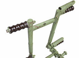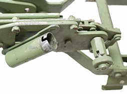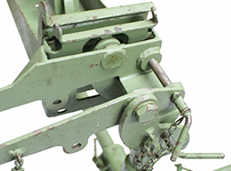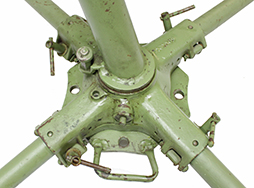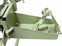 - アイテム説明M63対空銃架は文字通り航空機に対して大きな仰角をとれるように開発されたもです。勿論、対地攻撃にも使えますがその際は後部のハンドルを270度回転させてクレイドルの下に固定します。プレートには「HEINTZ MANUFACTURING CO.」の文字が確認できます。弾薬箱トレイ(100連用弾薬箱を載せて上から固定する部品)は付属していますが、画像に写っている弾薬箱、ダミーカートそして銃本体は付属致しません。 脚は4本共に取り外し可能です。 全体に塗られているグリーンは再塗装されたものと思われます。 破損等はありません。大きな歪みは無くクレイドル部分と支柱も簡単に分離ができます。(NI)