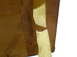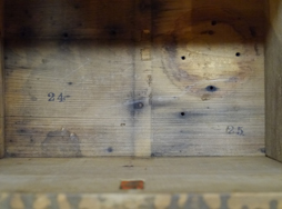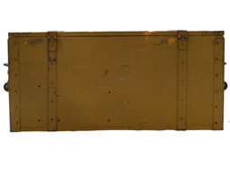 日本陸軍 一式機動四十七粍砲 属品箱です。 内部欠、側面に「1機砲 属品箱」の白貼付文字(ステンシル)が見られます。 内部には組立時の通し番号や「小」の押印の他に文字は見られず、製作年度は不明です。蓋の開きを制限する右側の紐は切断されています。 左右取手付きです。 時代相応の使用感が見られますが、総じて状態は良好です。 全長:約70cm 高さ:約33cm 幅:約32,5cm (TK)