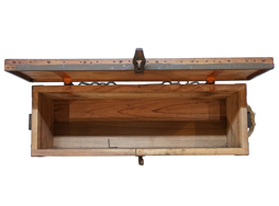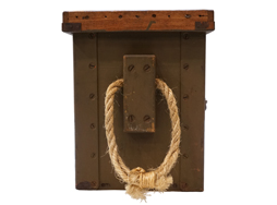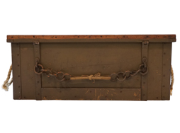 - アイテム説明日本陸軍 小銃弾薬箱です。 表面/裏面には「小銃彈藥箱」の白貼付文字(ステンシル)が見られます。 内部に「赤」の焼印が見られますが、製作年度に関しては押印が無く不明です。 蓋の留め金具もしっかり機能し、蓋の開閉も問題なく行う事ができます。 左右に荒縄取手付、背面には駄載用の吊鎖(合計2箇)付きです。 天井部(蓋部)の帆布のみ欠となっています。 木部の大きな割れや痩せも見られず、全体的に良好な状態を保っています。 全長:約74cm 高さ:約26,7cm 幅:約23,6cm (TK)