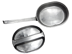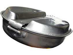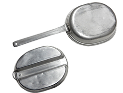 第二次世界大戦中から1990年頃まで使用されていた、1965年製のアメリカ軍の野戦食器です。 ロックを解除するとフライパンとトレーに分けることが出来、U.S. REGAL1967 DSA-400-67-C-6284-TR512の文字が柄の部分に刻印されています。 使用時に付いた凹み、傷などがございますが全体に状態の良い品です。