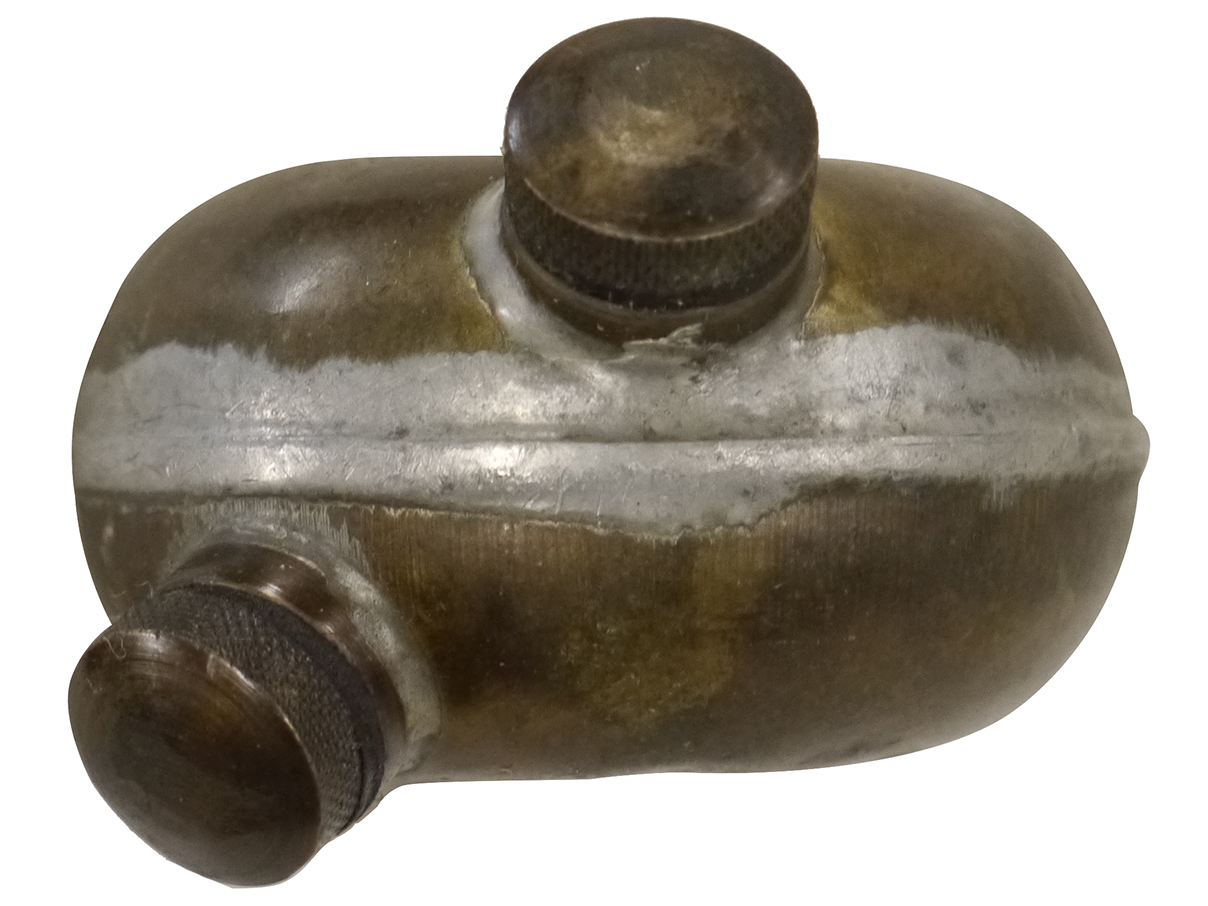 ユーゴスラビアのユーゴ M48小銃 オイラー(二槽式)です。 本体は真鍮製で、蓋の部分には漏れ防止のゴム製リングが嵌っています。 片側には「ChISh」、もう片面に「POD」の刻印が見られます。 オイラー本体には経年によるくすみや若干の凹みが見られますが、シルエットは完全です。 (TK)