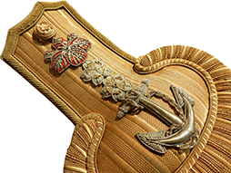 - アイテム説明Japanese Navy Officer Full Dress Cocked Hat and Epaulettes owned by the Captain of the Heavy Cusser “FURUTAKA"日本海軍大佐正肩章と佐官用正帽です。海軍士官の最上級の儀礼服装である正装は即位の礼や諸外国の王族等の奉迎などの宮中関係の行事や儀礼で用いられ「海軍服装令」から正帽、正衣、正肩章、正袴、正剣帯、長剣、黒革製の短靴、白色の麻襦袢・麻襟、白色革製の手袋などの着装品からなっていました。日本海軍の服制は明治3年に制定されその後明治6年、16年、20年、29年、33年、37年、大正3年、8年など度々改正され、また当初は大礼服と呼ばれましたが正服となり大正期には正装と名称が変更されました。今回の正肩章と佐官用正帽は大正8年に改正された品と思われます。