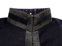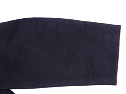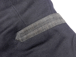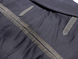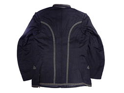 明治十九年制は本来ですと胸部左右各五個の肋骨紐と蛇腹組の袖章が付きますが、この品では極めて丁寧に取り外されています。肋骨紐と袖章が外された理由については推測となりますが、戦時中にそれらが動作の邪魔になるために外してしまった、若しくは肋骨紐が無くなってしまった明治三十七年制軍衣などに合わせるため敢えて外してしまった場合等が考えられます。 東京店に参考品ですが当初から肋骨の無い品がありますので、制式ではなかったものの着用は認められていた品と思われます。