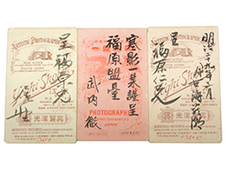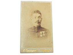 武内徹工兵大尉(後に中将)、古海厳潮歩兵中尉(後に中将)、尾野実信歩兵中尉(後に大将)が陸軍大学校卒業時に同期の福原銭太郎歩兵中尉(後に中将)に贈ったポートレイト3枚セットです。