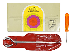 外装は全体的に傷が散見され、上蓋の角3か所には破れがみられますが、現状型崩れや開閉の問題はございません。 側面には数字の書き込みとスタンプが見られます。 内部は一部剥がれが見られますが、使用感はほとんど見られず汚れもなく良いコンディションを保っております。 使用感の殆ど無い金属製クリーニング・ロッドとLLAMAの文字の入ったマイナスドライバー、マニュアルが付属します。