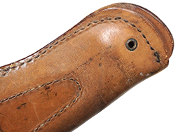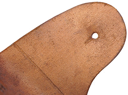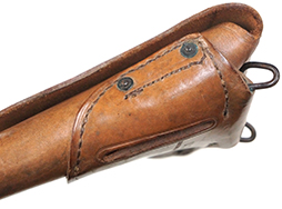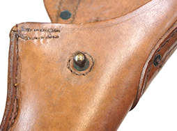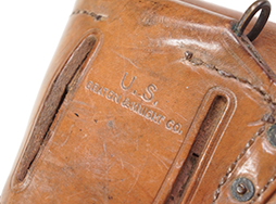 - アイテム説明第一次世界大戦時から米軍で使用されていた、M1911自動拳銃用のM1916ホルスターです。 本体裏面には第二次世界大戦中にM1916ホルスターを製造していた米国マサチューセッツ州ウースターのGraton & Knight社の刻印が入っています。 本品には明るいブラウン色の革が使用されています。 全体的に経年による傷や汚れが散見されるものの、致命的なダメージはなく革も程よい柔らかさを残しており、状態は良好です。 金具については一部仕上げの剥離や緑青が出ている箇所が見受けられますが、がたつき等もなく。また留め具を通す穴の広がりも少ないため、通常使用に問題はございません。 表面に「US」のスタンプと、裏面に製造元の「U.S. GRATON&KNIGHT CO」のスタンプが、それぞれ確認できます。 店 (MW)