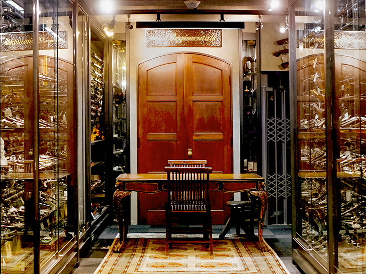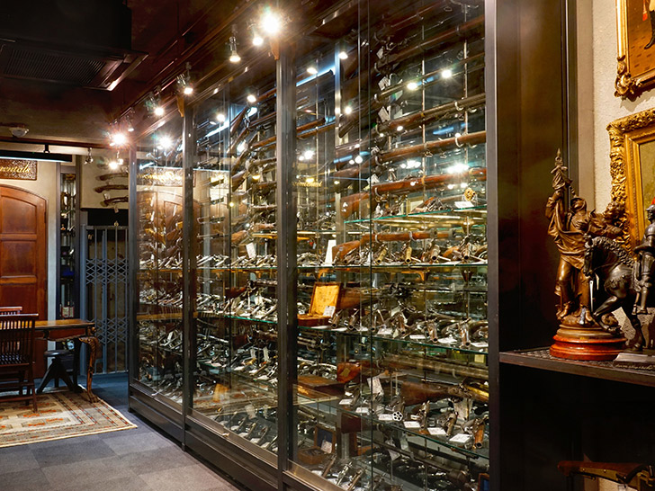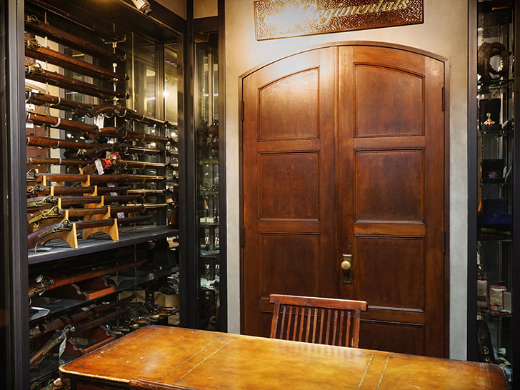 重厚な扉の先に広がる別世界。静寂の中で名銃と対峙するひととき。