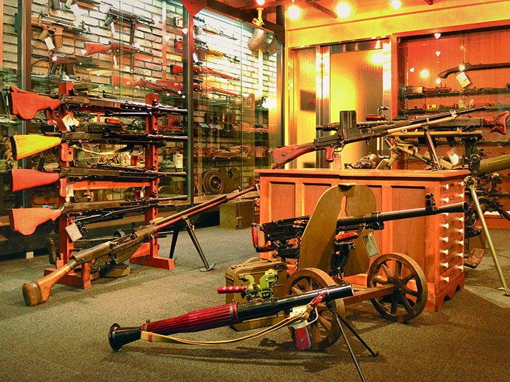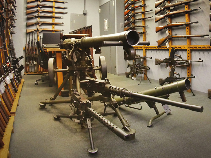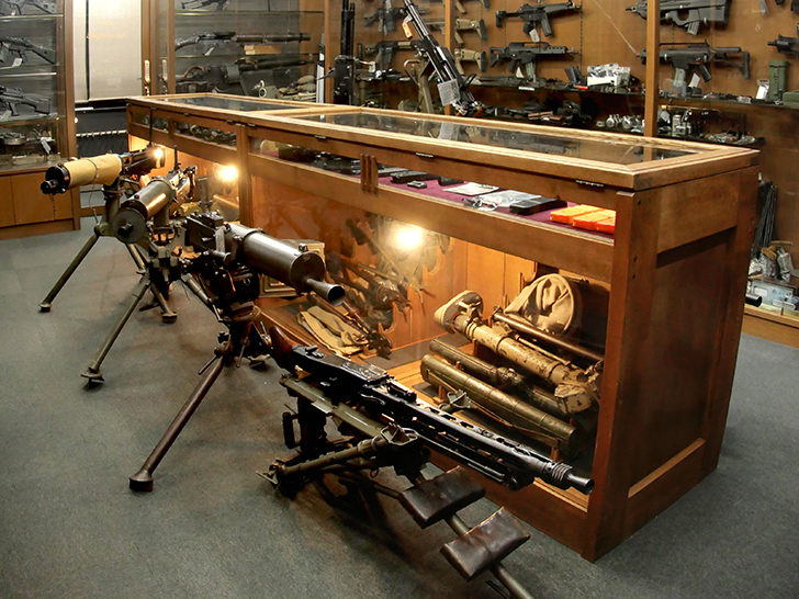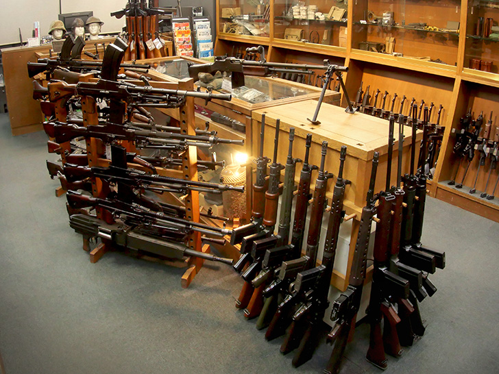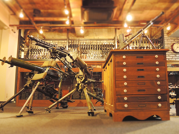 圧倒的品揃えで迎えるフロア。歴史を語る重火器が並びます。